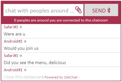 The chatroom widget enables restaurant owners to offer LOCAL CHATROOM to clients connected to the restaurant's WIFI. No registration is required.